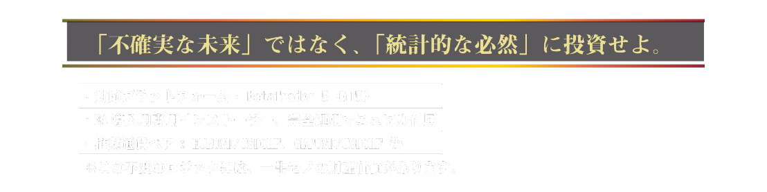 もはや、週末のポジション解消や月曜朝のON/OFF操作に、あなたの貴重な時間を使う必要はありません。